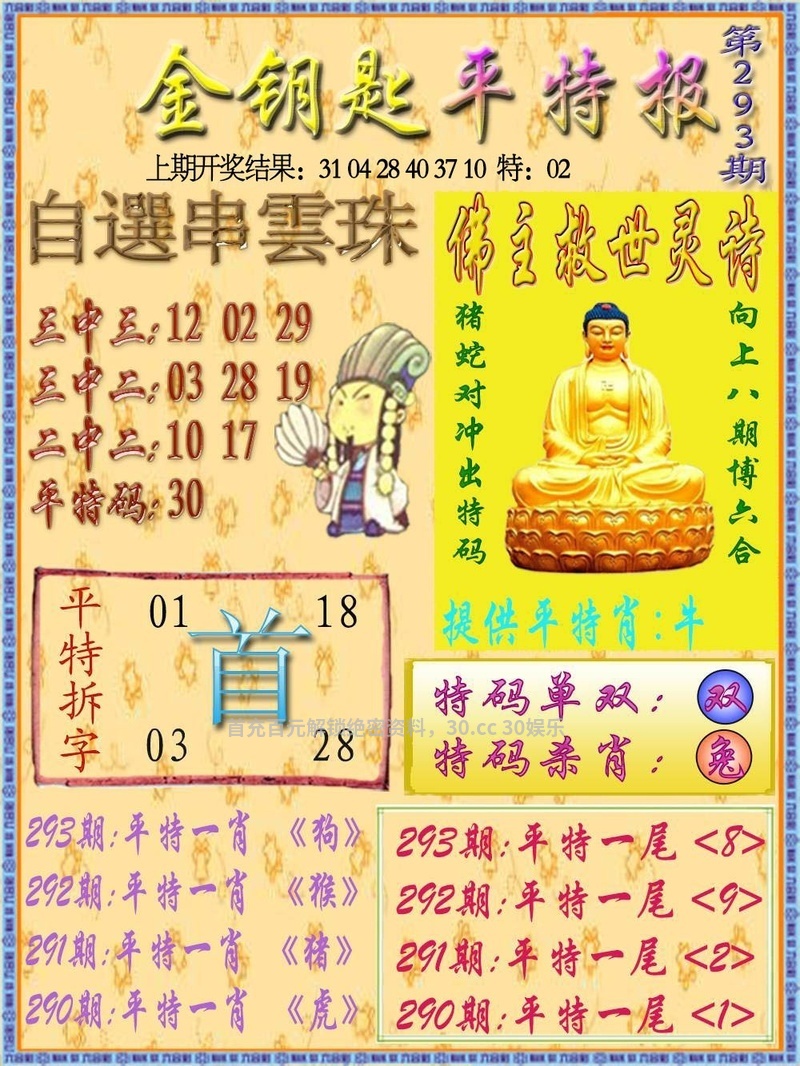 295期一字記曰:【傲】 金玉其表,傲然挺立,写绰约天外无余 孤芳自赏,自作多情,回看尘土似前生 《惘》 解:写绰约天外无余:天外解天肖猪马猴牛兔龙 综合取肖:猪马猴牛兔龙 |